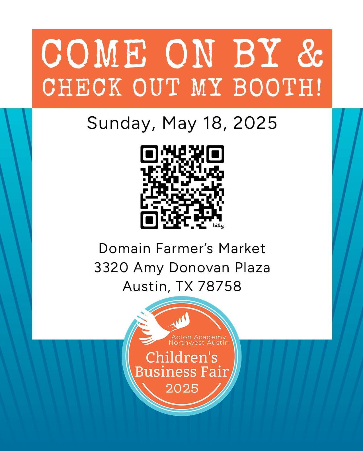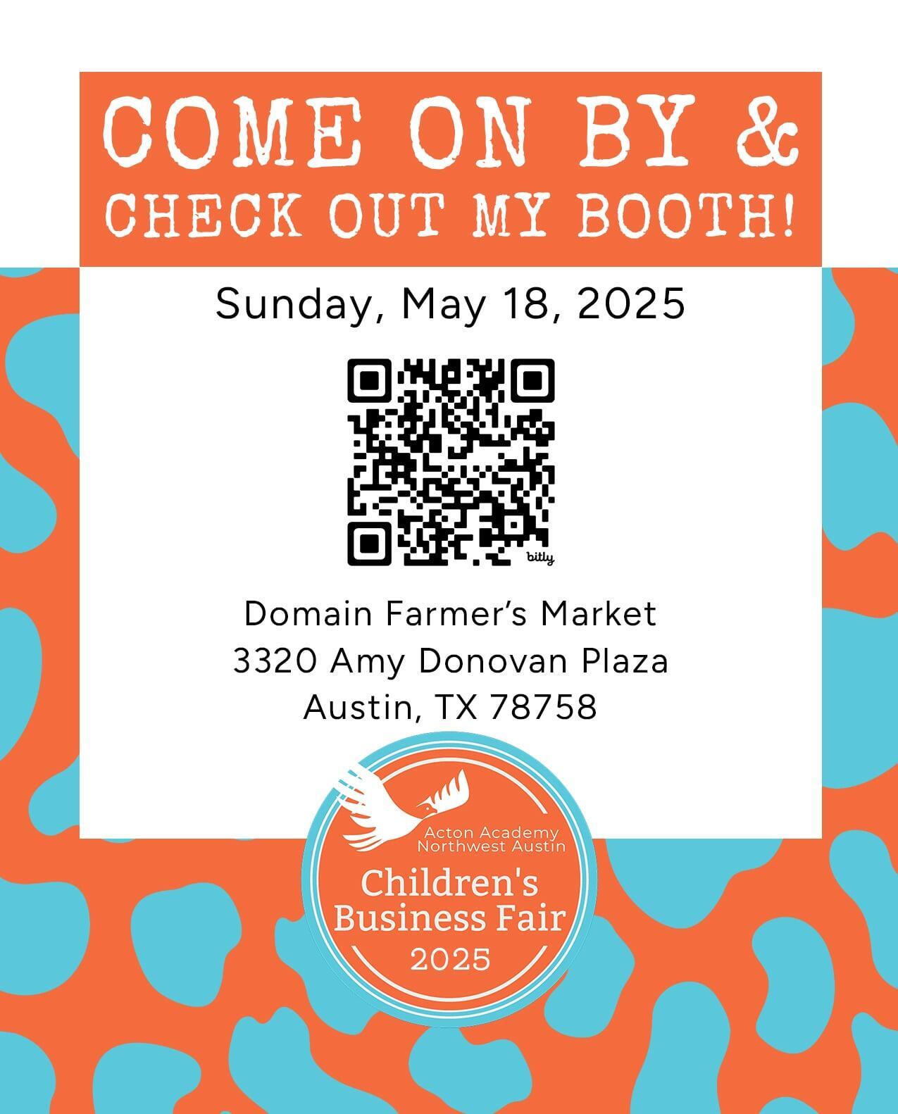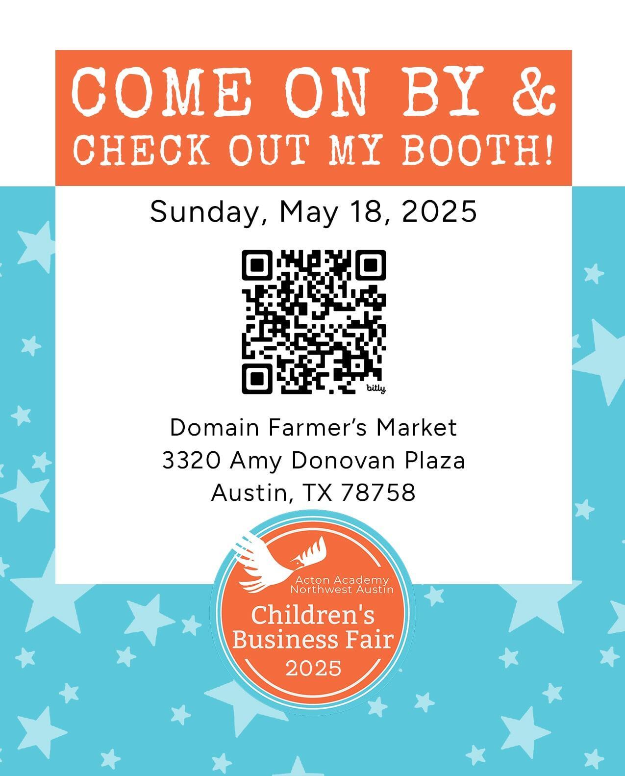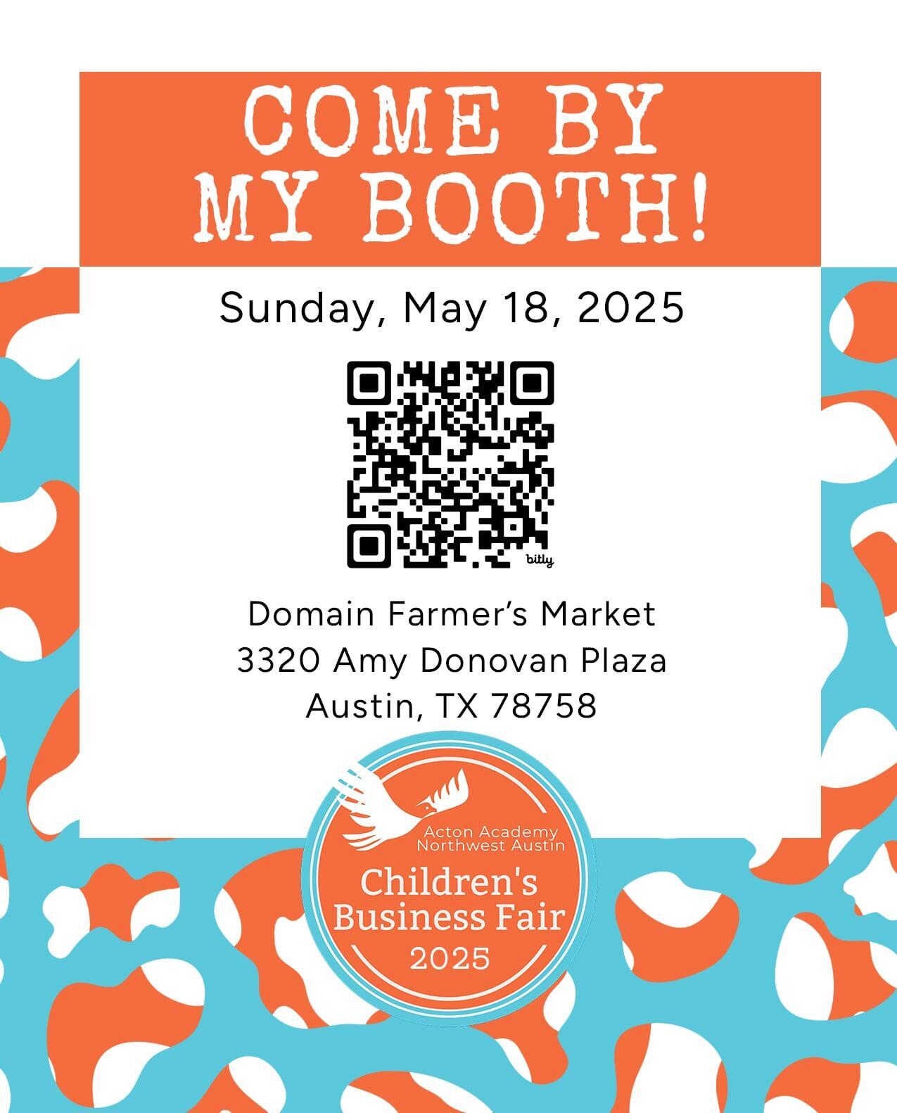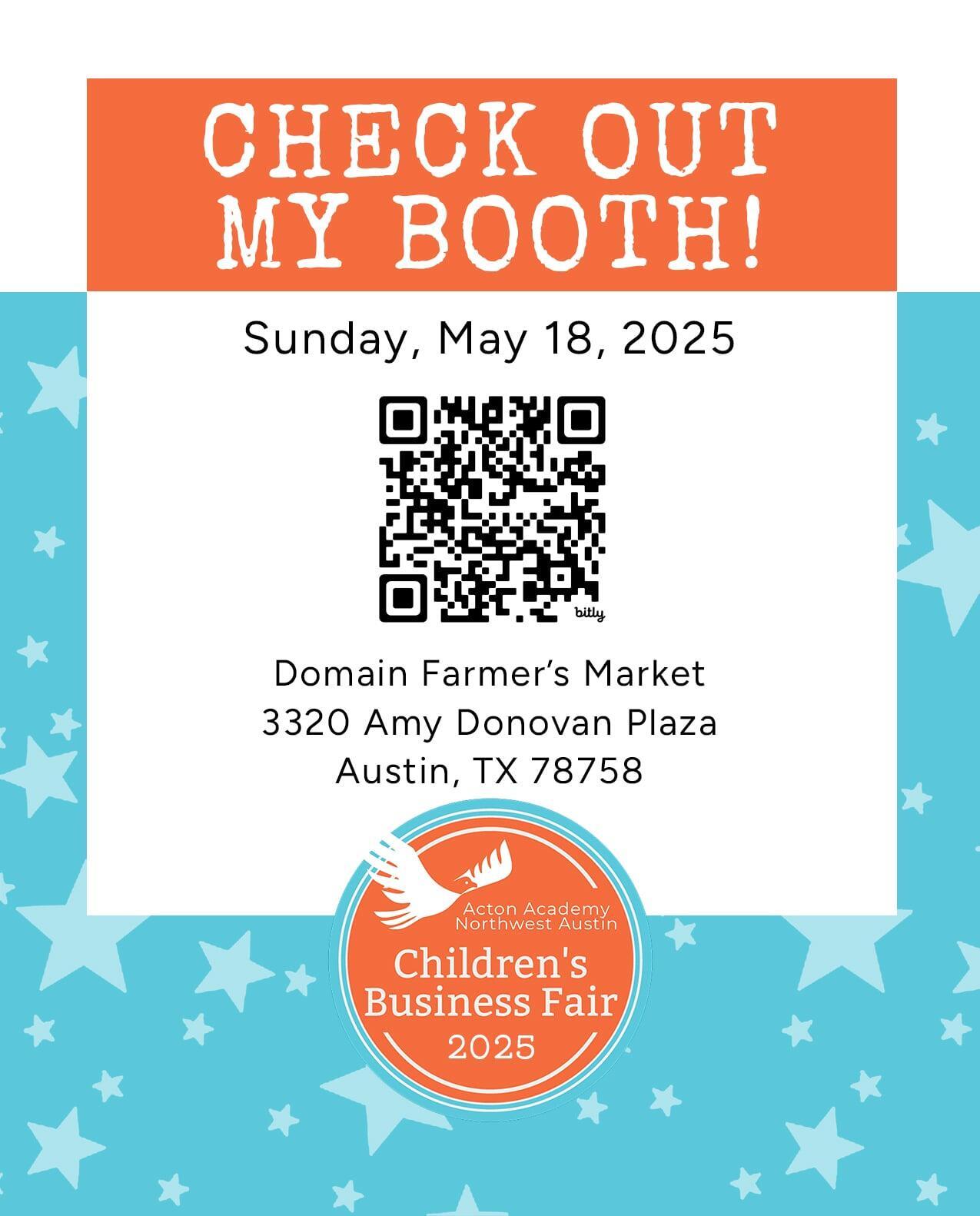 NOTE: To honor the spirit of the Children's Business Fair, booths must be led and operated by the young entrepreneurs themselves. While parents are welcome to support from the sidelines, any booth found to be primarily run by an adult will be disqualified from award consideration. Thank you for empowering your child to take the lead!
